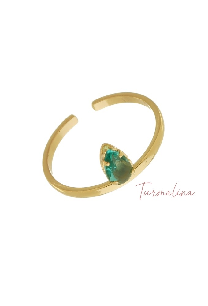 anel dourado com turmalina