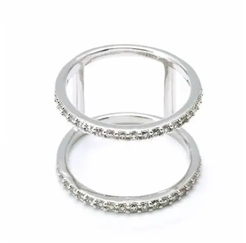 O anel aro duplo cravejado em ródio branco é a união perfeita entre modernidade e elegância atemporal. Seu design com dois aros paralelos cria um efeito sofisticado e estruturado, enquanto as zircônias cravejadas adicionam brilho delicado e refinado.