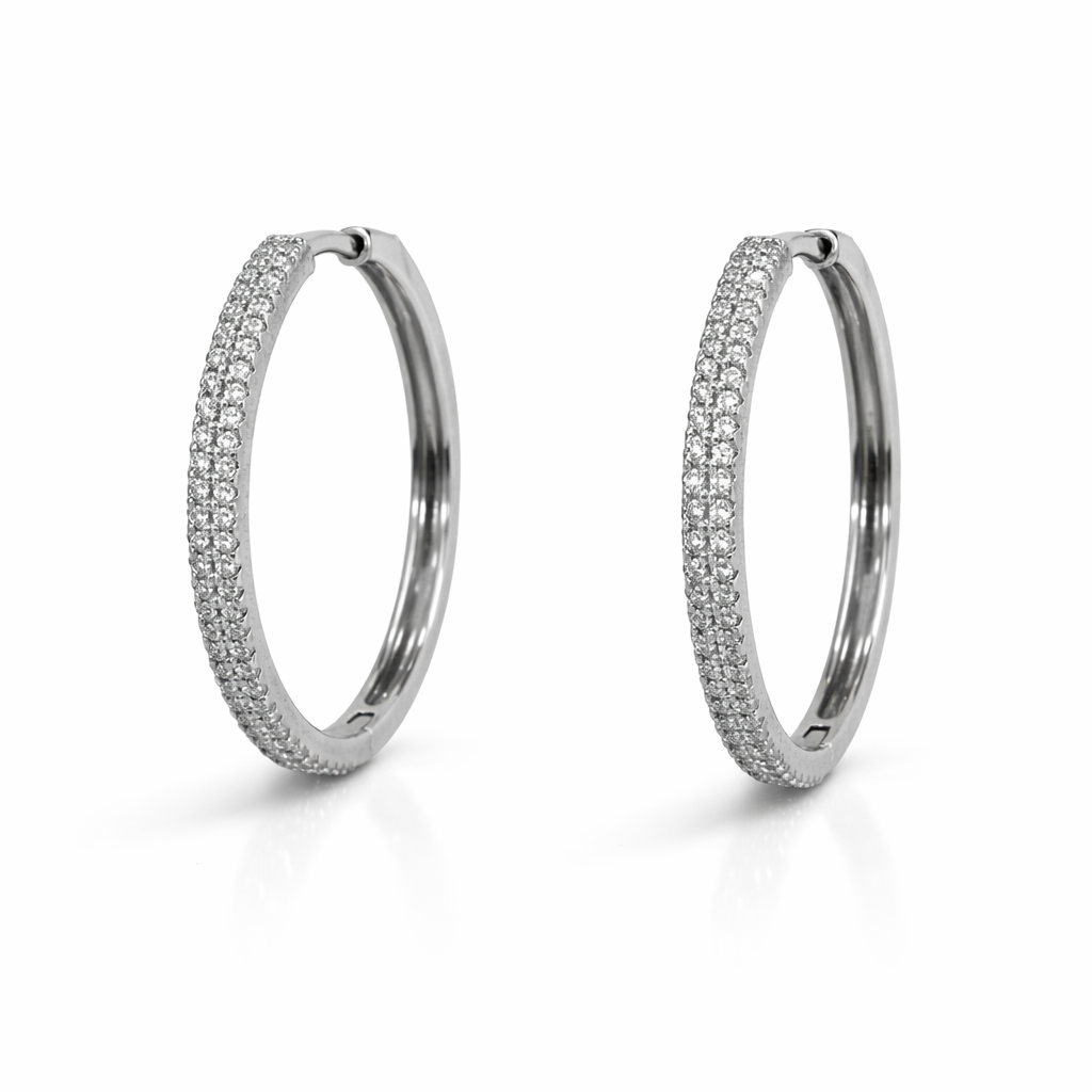 A Argola Grande Cravejada Banhada a Ródio é perfeita para quem busca sofisticação com presença.
