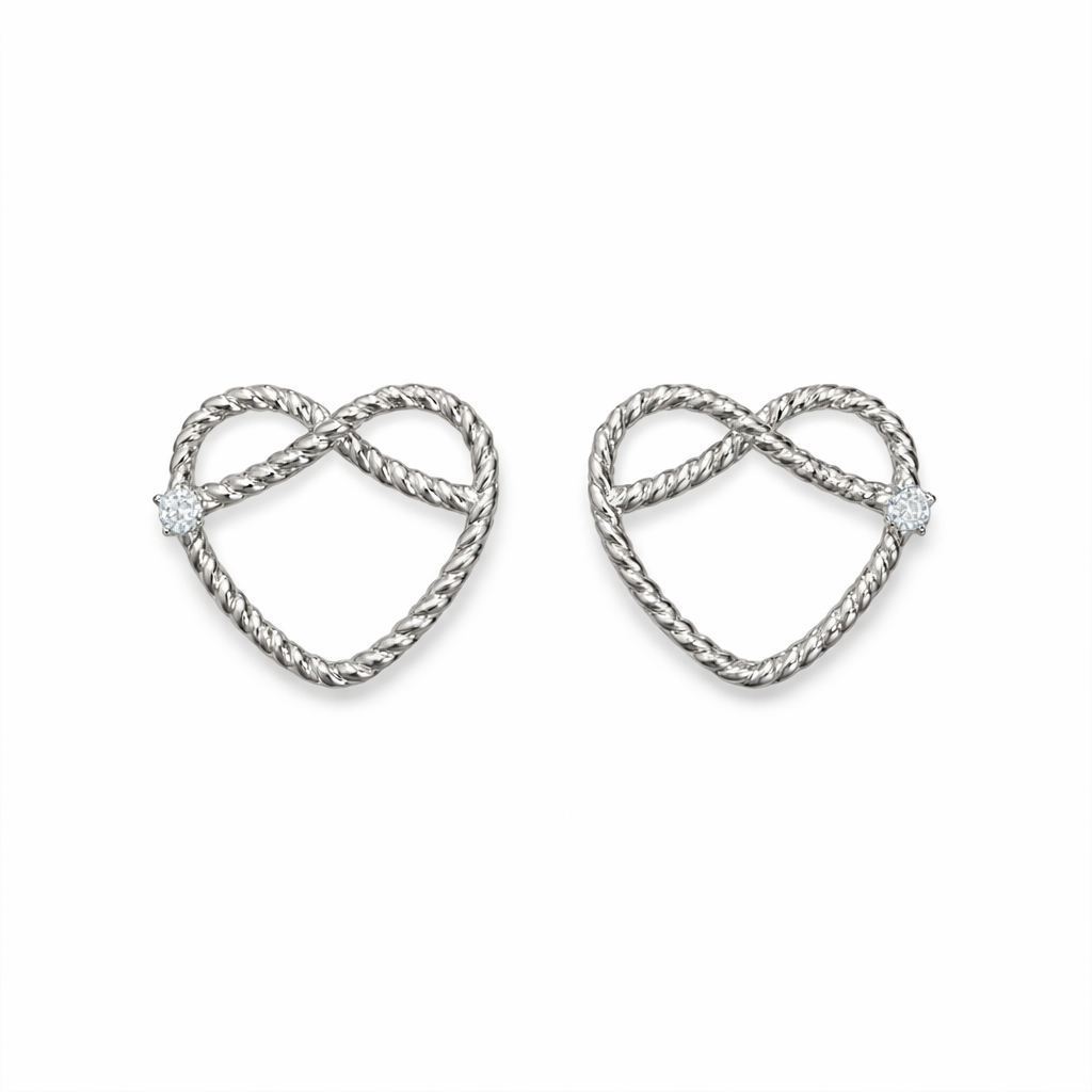 O Brinco de Coração Vazado Trançado Banhado a Ródio é delicado e cheio de personalidade.