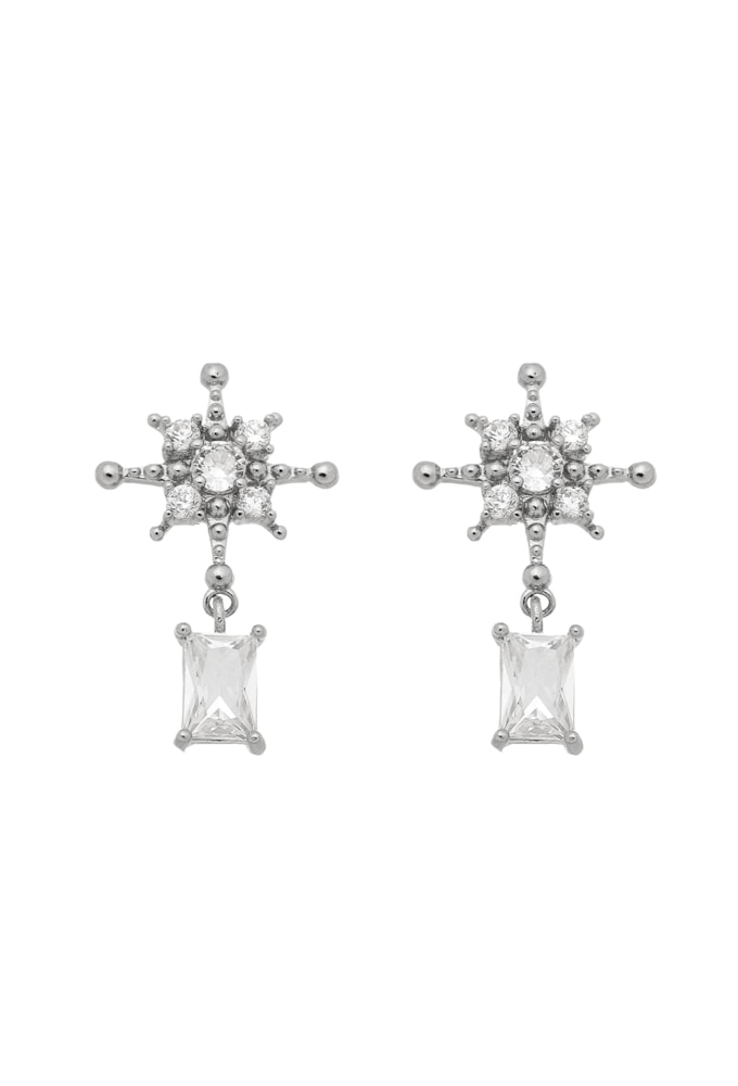 O Brinco Estrela com Cristal Retangular banhado a ródio combina delicadeza e sofisticação em um design moderno e marcante.