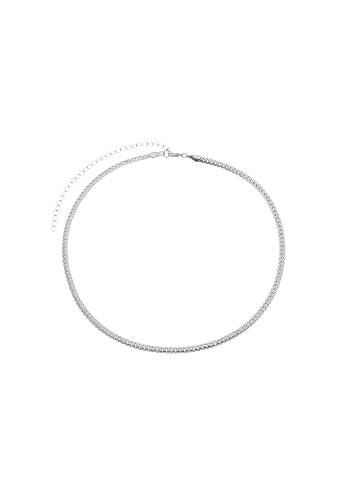 A Choker de Fita Trançada banhada a ródio é uma peça elegante que combina delicadeza e presença na medida certa.