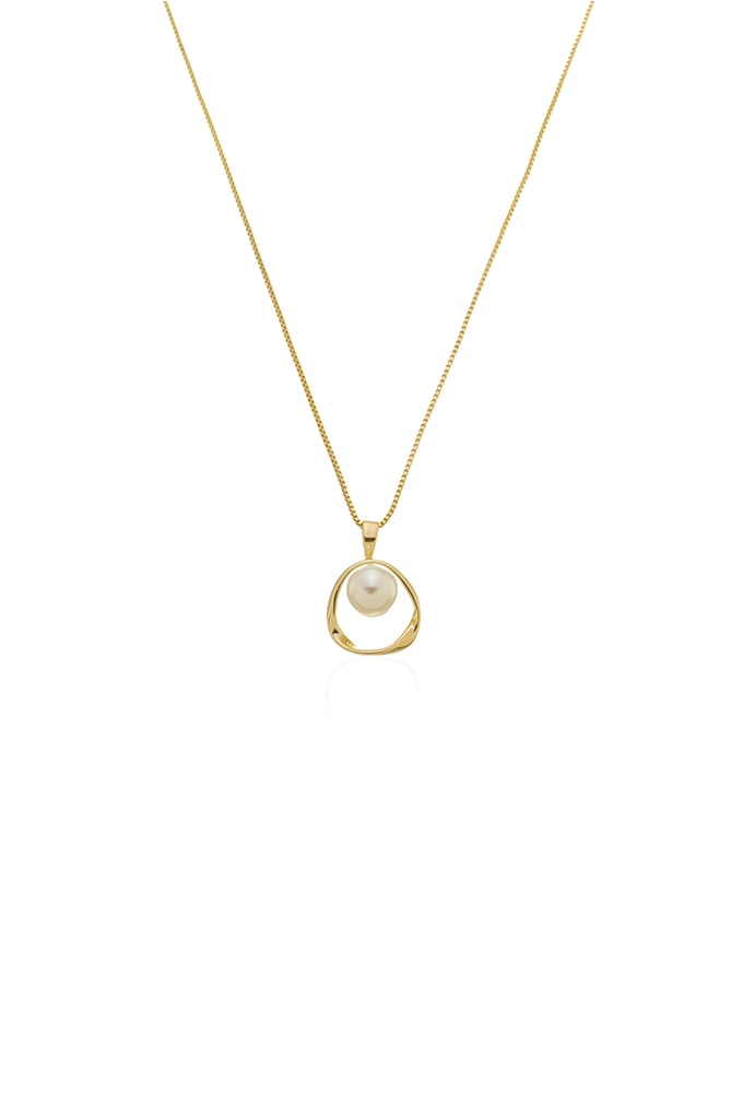 O Colar com Pingente Orgânico de Pérola Banhado a Ouro une delicadeza e modernidade em um design sofisticado e atemporal. O formato orgânico do pingente envolve suavemente a pérola central, criando um contraste harmonioso entre o dourado luminoso e a elegância clássica da pérola.