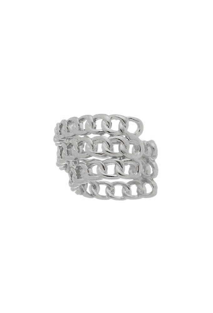 Com três fileiras de elos sobrepostos, ele cria um efeito volumoso e sofisticado na orelha, elevando qualquer produção.