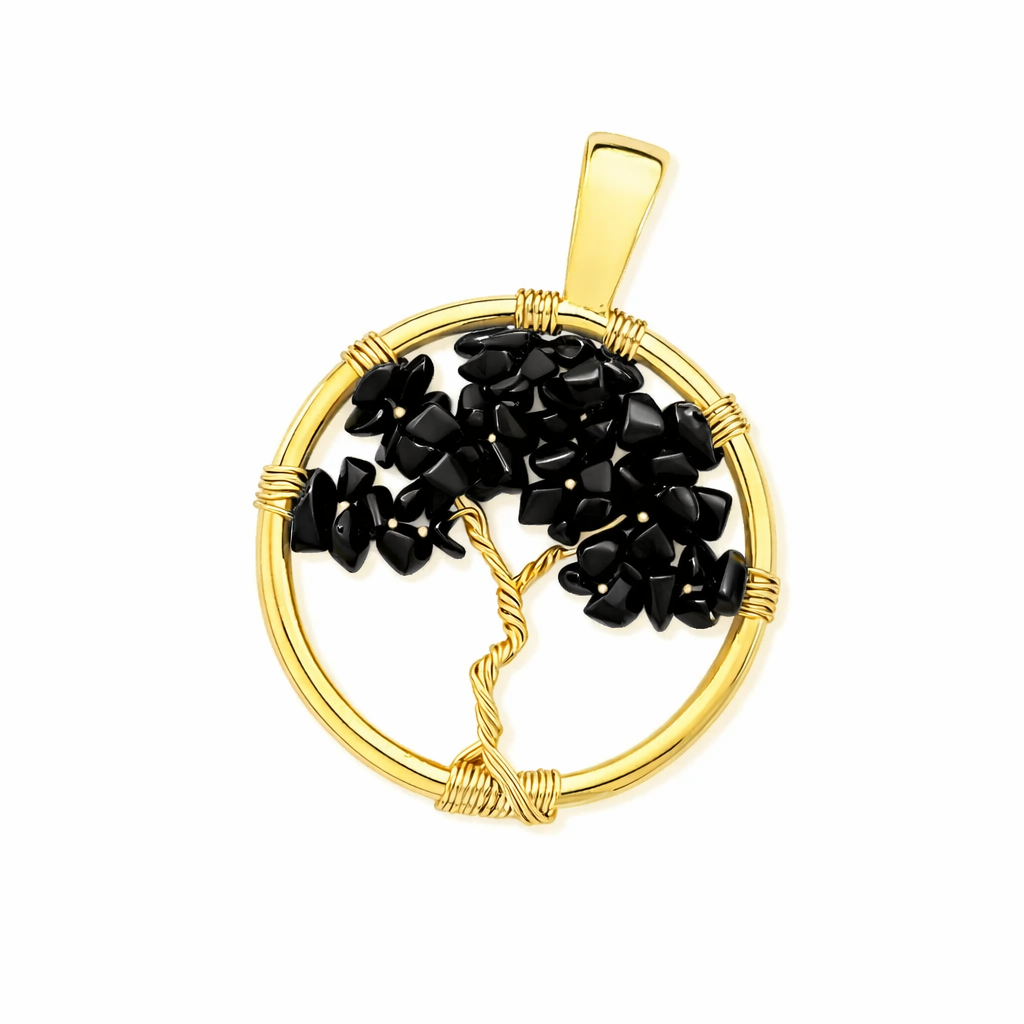 O Pingente Árvore da Vida com Pedra Natural Obsidiana Negra Banhado a Ouro é uma joia cheia de significado.
