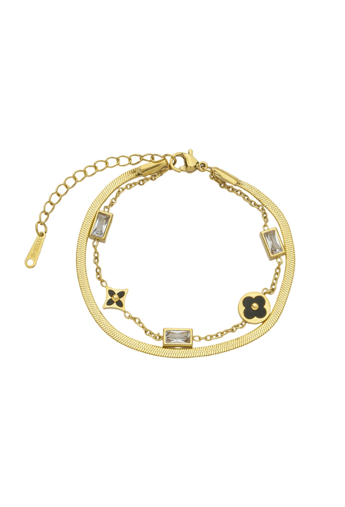 Pulseira Dupla Inspiração Aço Inox Dourado Ônix
