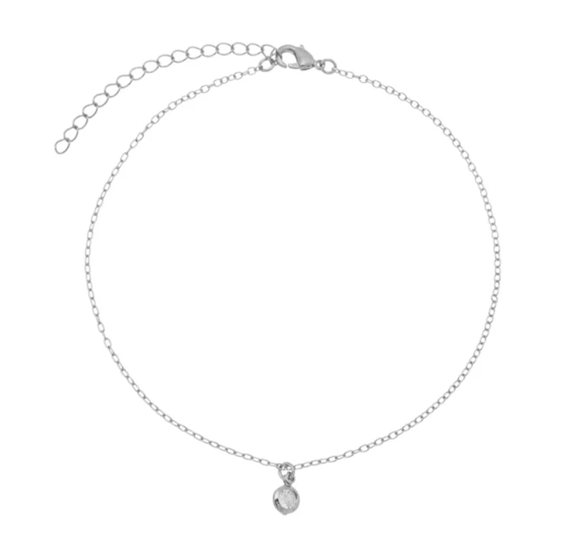 A Tornozeleira com Ponto de Luz Banhada a Ródio é perfeita para quem ama acessórios discretos com toque sofisticado.