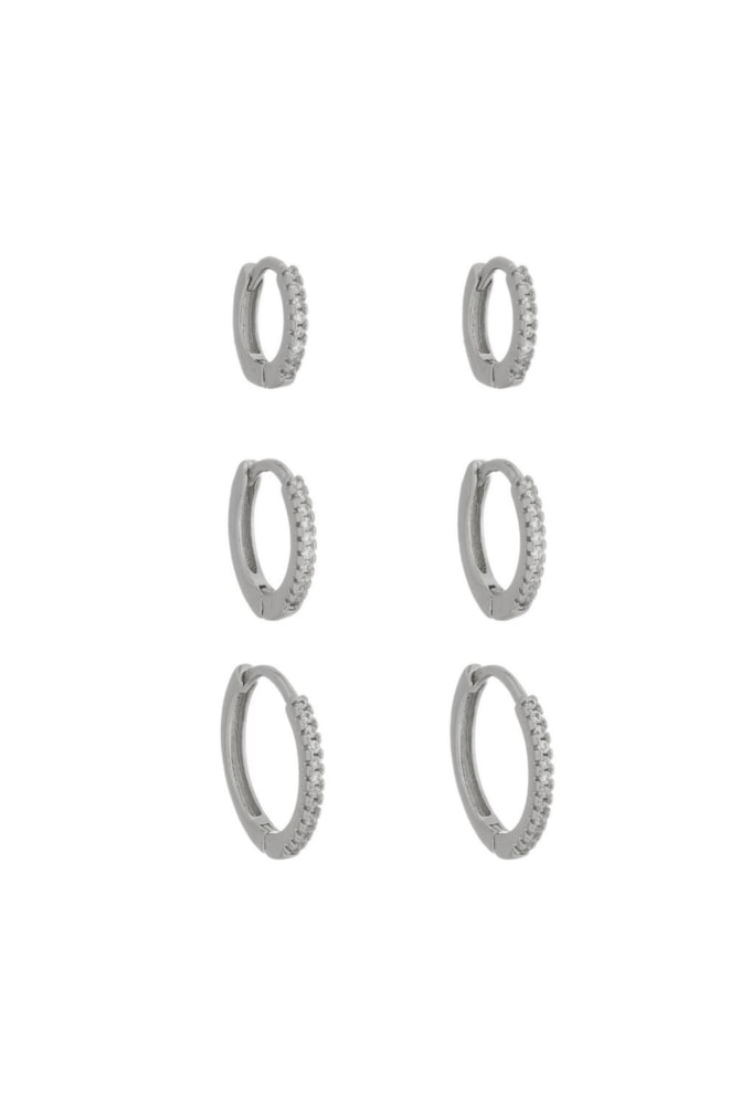 O Trio de Argolinhas com Zircônias Cristais Banhado a Ródio é a escolha perfeita para quem ama elegância discreta com toque de brilho.